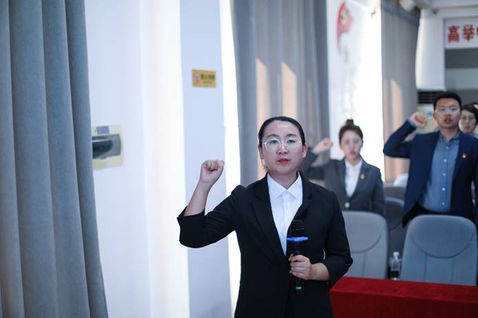 最后,在学生处副处长臧楠的领誓下,全体辅导员举起右手,庄严宣誓。通过宣誓,全体辅导员进一步增强了职业认同感,加深了高校辅导员作为学生成长成才的人生导师和健康生活的知心朋友的责任和使命的理解。