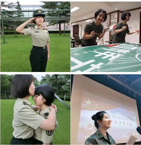 保家卫国终不悔, 绿色军营献青春。 古有花木兰替父从军, 今朝有志青年献身国防, 巾帼何须让须眉!