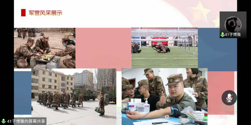 为解答很多女同学对女兵待遇的疑问,于博雅同学作为女兵代表给大家排忧解难,她表示,在部队中女兵和男兵几乎没有差别,会有着同等强度的训练。两年的军旅生活不但没有令她有过丝毫的后悔,反而收获了几份难得的战友情。从她所展示的PPT中不难看出她对军旅生活的怀念。她认为:要做一个有追求的中国人,青春不止眼前的潇洒,还有责任与担当!