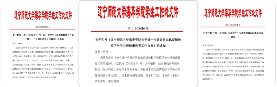 为深入贯彻落实习近平总书记关于疫情期间“加强心理干预和疏导,打赢疫情防控心理战”精神,按照教育部和省教育厅有关要求,学生处组织制定了《2020年“5·25大学生心理健康教育月”活动方案》。进一步提高工作针对性,不断扩大心理健康教育的覆盖面、受益面,切实提高师生心理健康水平,减轻疫情可能导致的心理干扰和心理危害,培养学生积极向上的健康心态,提高其自我调适能力。