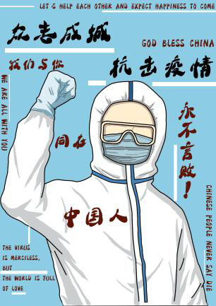 设计说明:以战疫为背景设计的海报,给在前线的工作人员加油助力。