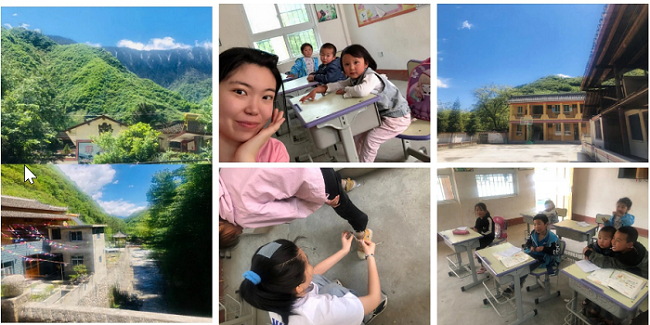 张瀚丹同学有着这样的感悟:这里的孩子都是留守儿童,家里只有爷爷奶奶。四、五月份的山区是非常寒冷的,很多孩子不穿袜子光着脚穿鞋,能看见他们的小手小脚冻的通红,她心里很心疼;孩子们爷爷奶奶常常会把采来的野菜带到学校她给吃,她的心里总是甜甜的。当她和这些孩子相处之后,心里充满了阳光,她说她会继续为了自己的考研梦想不懈努力,为孩子们做出好的榜样!