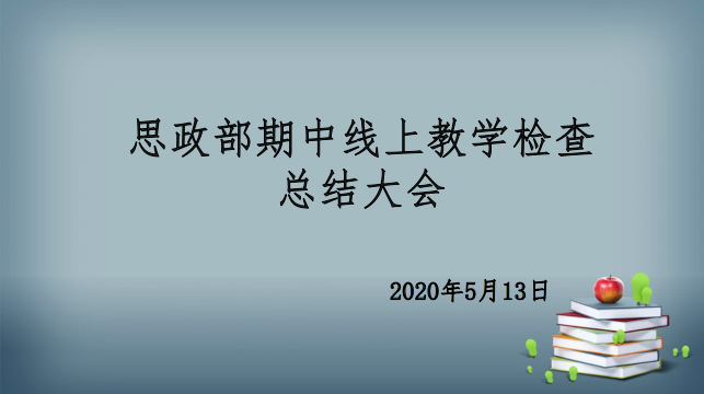 为做好思政部线上教学管理工作,根据教务处下发的《教务处关于开展2019-2020学年第二学期期中线上教学检查工作的通知》要求,结合实际,思政部已顺利完成本次期中线上教学检查工作,并于5月13日下午召开思政部期中线上教学检查工作总结大会,会议由思政部主任刘彦清主持,思政部全体教师参加本次会议。