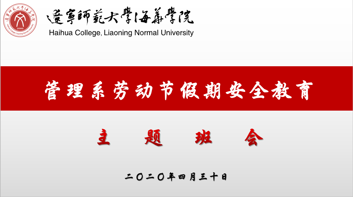 管理系历来重视安全教育工作,此次安全教育线上主题班会的召开,有效帮助了学生巩固疫情防控下的安全“防护墙”,使学生们进一步了解“五一”假期相关的安全知识,牢记安全要点和要求,牢固树立“安全第一,预防为主”的理念。