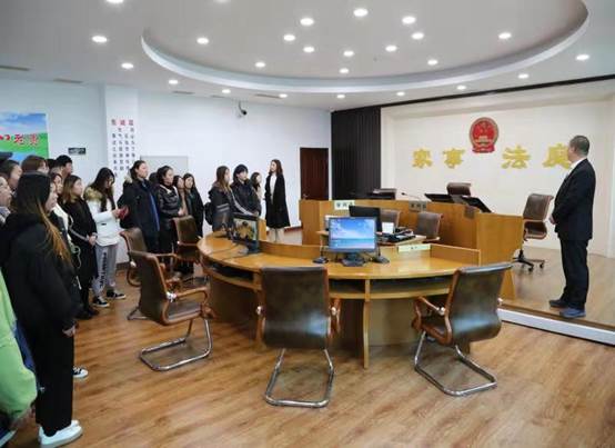 随后,师生们在庄河市人民法院法官的带领下,参观了法院的立案大厅、家事审判庭、荣誉室。工作人员向师生们系统地介绍了法院的建设情况,详细讲解家事审判庭成立的根本目的,以及与传统审判庭的区别,让学生及时了解到司法实践中最新的理念动态,获取更多书本以外的知识。