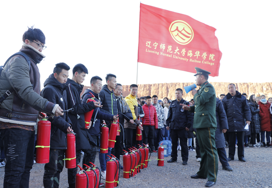 随后庄河市消防大队指导员,指导海华学院师生代表进行了报火警、疏散、逃生自救、灭火四项演习科目,并观摩了消防员消防车灭火、现场救援、高空缓降及解决被困火场学生的全过程。最后的灭火演练中,消防救援人员耐心地为全体师生解说并演示消防器材的使用方法,师生代表积极参与、亲身体验,掌握了灭火器的使用方法。