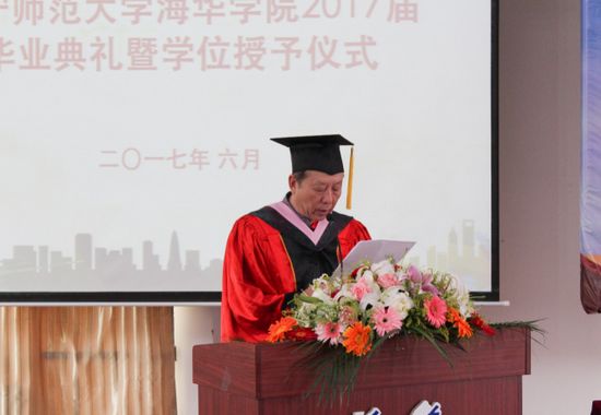 颁奖过后,学生代表外语系英语专业任芷娴、教师代表管理系朱爱辉老师分别发言,共同表达了海华师生的深厚情谊。任芷娴同学回顾了大学期间学习与工作的美好时光,感谢同学的陪伴、感激老师的教导,感恩母校的培养。朱爱辉老师表达所有教师的心声,希望2017届毕业生今后可以成为自信、感恩、努力奋斗的人。