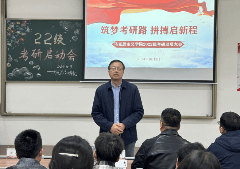 此次考研动员大会的成功举办,极大地激发同学们的考研热情,进一步拓宽了同学们的视野。相信在学院的安排和老师们的悉心指导下,同学们定能在考研征途上勇往直前,斩获佳绩。展望未来,马克思主义学院将坚定不移地推动考研工作的开展,紧密围绕学生实际需求,全面构建多维度保障体系。期望同学们都能砥砺前行,再创考研佳绩!